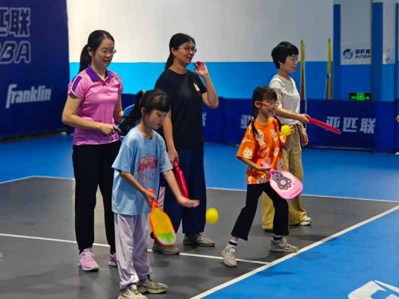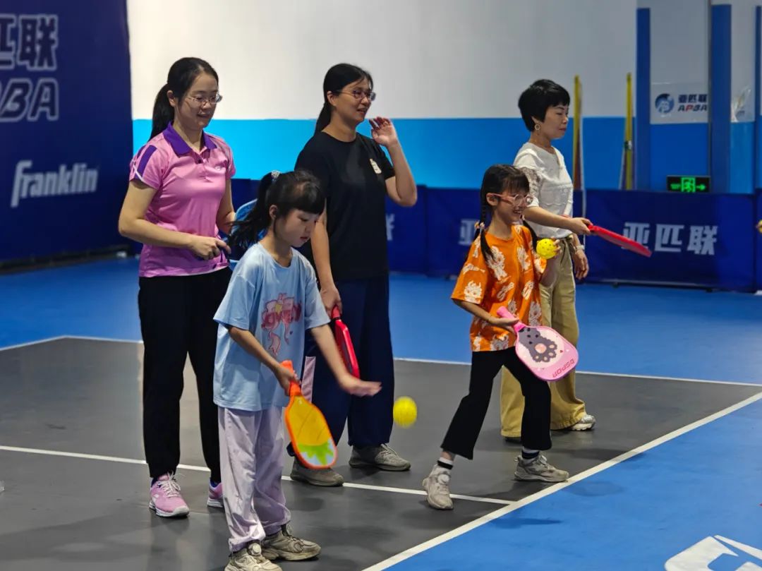 亚匹联(南沙)匹克球中心洋溢着欢声笑语。21组员工家庭共计45人齐聚于此,参与“爱的抛物线”家庭匹克球体验活动。活动现场,孩子们与父母默契配合,挥拍击球间尽显活力。6-9岁的萌娃们手持“儿童拍”专注接球,10岁以上的小选手则用“成人拍”展现飒爽英姿。公司工会特别准备了精致茶点与节日蛋糕,还为每位孩子送上神秘礼物。一位参与员工感慨道:“和孩子一起运动、一起挥洒汗水,是今年六一最珍贵的记忆!”