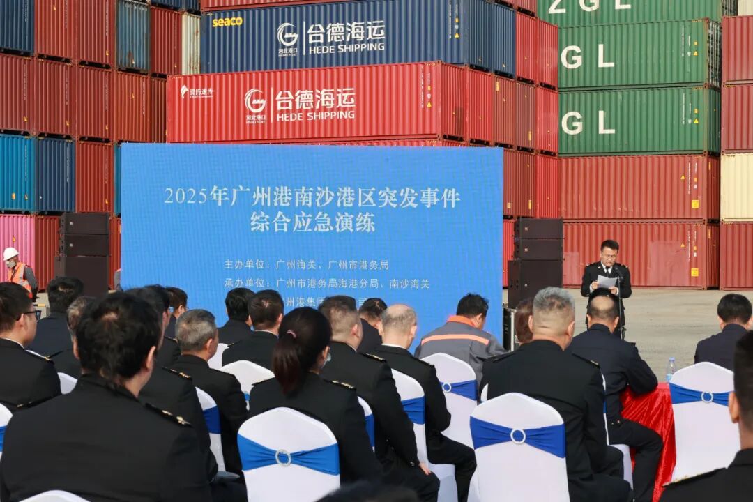 高规格部署,领导聚力谋安全 演练得到各级单位高度重视,广州海关副关长黄斌、广州港集团副总经理吴泰云、广州市港务局海港分局局长张家国、南沙海关关长刘作仁、公司总经理范健文等领导亲临现场指导,广州海关职能处室及隶属海关、广州市港务局海港分局等相关部门负责人共同观摩。 开幕式上,南沙海关关长刘作仁致辞。他强调,本次演练是深入贯彻习近平总书记关于应急管理、安全生产和防灾减灾救灾重要指示批示精神的实践行动,更是落实安全生产治本攻坚三年行动与应急演练季部署的关键举措,对防范化解港口重大安全风险、强化政企协同机制具有重要意义。 全链条演练,实战场景验真功 作为本次演练的核心亮点,场景设置直击口岸安全关键风险点:2名身份不明人员驾车尾随闯闸,破坏海关布控集装箱,导致装载有毒易燃3类“树脂溶液”的40尺集装箱泄漏起火,险情瞬时升级。 围绕这一危急场景,演练精准开展三大核心科目:一是港口设施保安演习,夯实港区入口管控与非法闯入处置能力;二是港口危险货物专项应急处置演练,实施火情控制、泄漏封堵、人员疏散等专业操作;三是海关监管作业现场突发事件应急处置,规范布控货物响应与区域管控流程,构建“防-控-处”全链条处置体系。 在三级指挥体系统筹下演练高效推进,广州港集团副总经理吴泰云担任总指挥,广州市港务局海港分局副局长方加杰任现场应急指挥长,公司总经理范健文任现场总指挥,形成权责清晰的指挥架构。广州市公安局港航分局南沙港区派出所、南沙港区消防中队等参演单位闻令而动,从闯闸处置到险情控制无缝衔接,充分展现专业素养与协同能力。 精准点评促提升,总结部署启新程 演练结束后,广州市港务局海港分局局长张家国进行专业点评,对演练的场景设计、部门联动及处置效能给予高度肯定,同时指出优化方向。随后,广州海关副关长黄斌作总结讲话,强调各单位要贯彻落实习近平总书记关于应急管理、安全生产和防灾减灾救灾重要指示精神,以此次演练为契机,总结经验、补齐短板,防范化解港口重大安全风险,共创平安和谐的口岸环境。 本次演练由广州海关、广州市港务局联合主办,广州市港务局海港分局、南沙海关、广州港集团有限公司承办,不仅锤炼了应急队伍实战技能,更健全了跨部门协同联动机制。下一步,相关单位将持续完善应急预案、优化处置流程,以更坚实的安全保障护航口岸发展,守护国际运输与物流供应链行稳致远。